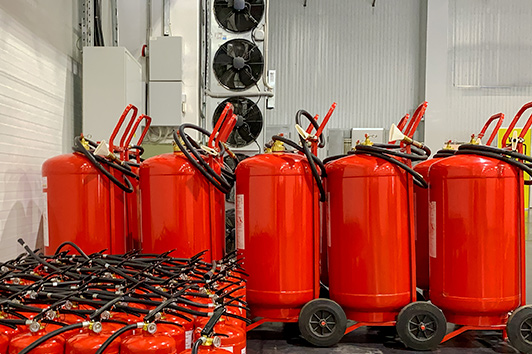 El contenido de estos equipos es el mismo polvo químico seco (PQS) de un extintor portátil pero en una cantidad bastante mayor que permite combatir fuegos de mayor proporción y son ideales para ser utilizados en áreas amplias o donde se requiere mayor capacidad del agente extintor.